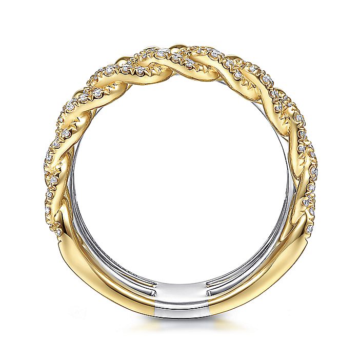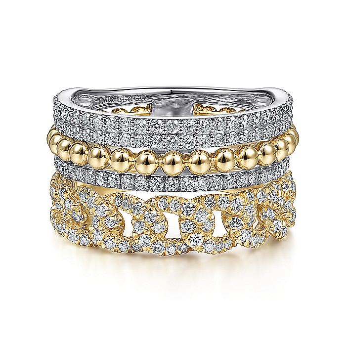 HOME / Gabriel & Co. LR51517M45JJ 14K White-Yellow Gold Wide Band Layered Diamond Easy-Stackable in size 11.4mm width