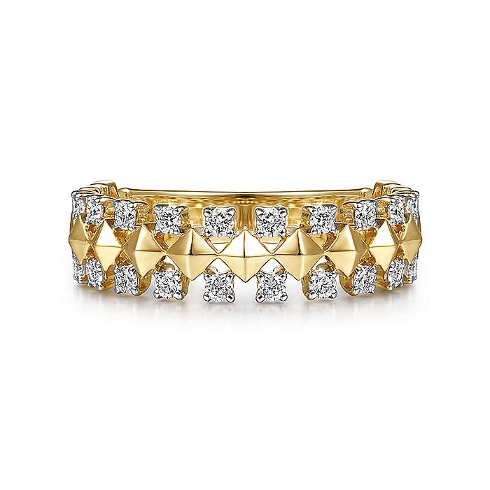 HOME / Gabriel & Co. LR51546Y45JJ 14K Yellow Gold Geometric Diamond Station Grommet Ring