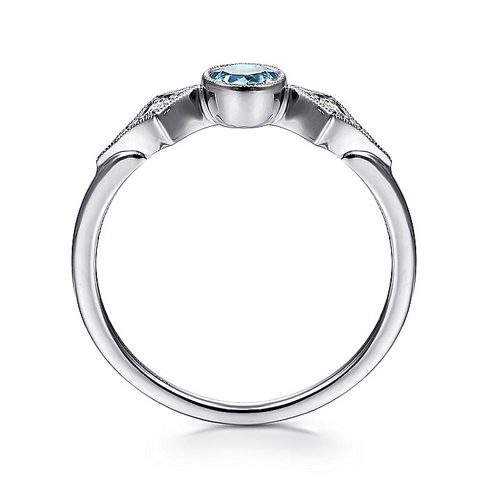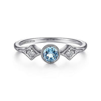 Gabriel & Co. LR51605W45BT 14K White Gold Round Blue Topaz and Diamond Three Stone Ring
