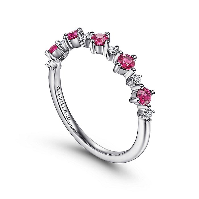 HOME / Gabriel & Co. LR51614W45RA 14K White Gold Alternating Round Diamond and Ruby Ring
