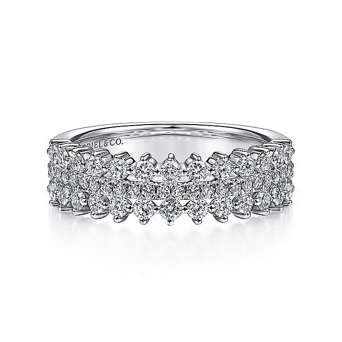 Gabriel & Co. LR51639W45JJ 14K White Gold Three Row Diamond Band