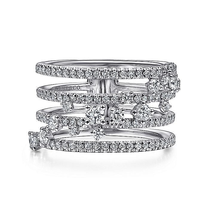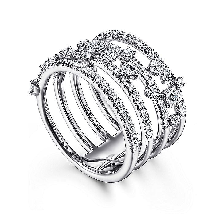 HOME / Gabriel & Co. LR51646W45JJ 14K White Gold Five Row Pavé Ring with Cluster Diamond Accent