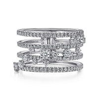 Gabriel & Co. LR51646W45JJ 14K White Gold Five Row Pavé Ring with Cluster Diamond Accent