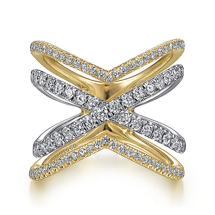 HOME / Gabriel & Co. LR51665M45JJ 14K White-Yellow Gold Open Diamond Criss Cross Ring