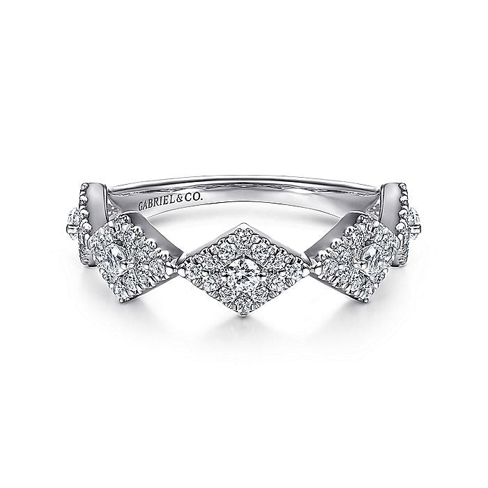 Gabriel & Co. LR51683W45JJ 14K White Gold Diamond Station Stackable Ring