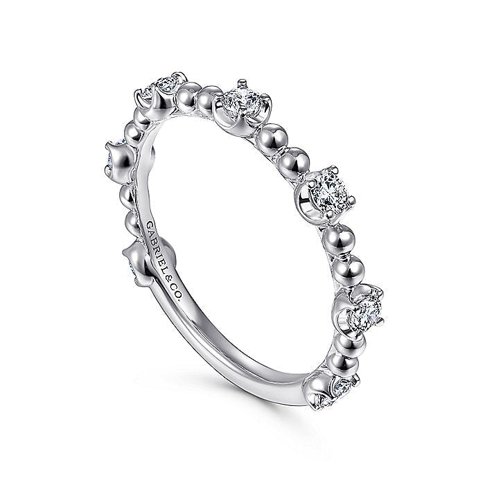 HOME / Gabriel & Co. LR51685W45JJ 14K White Gold Bujukan Ball and Diamond Station Ring