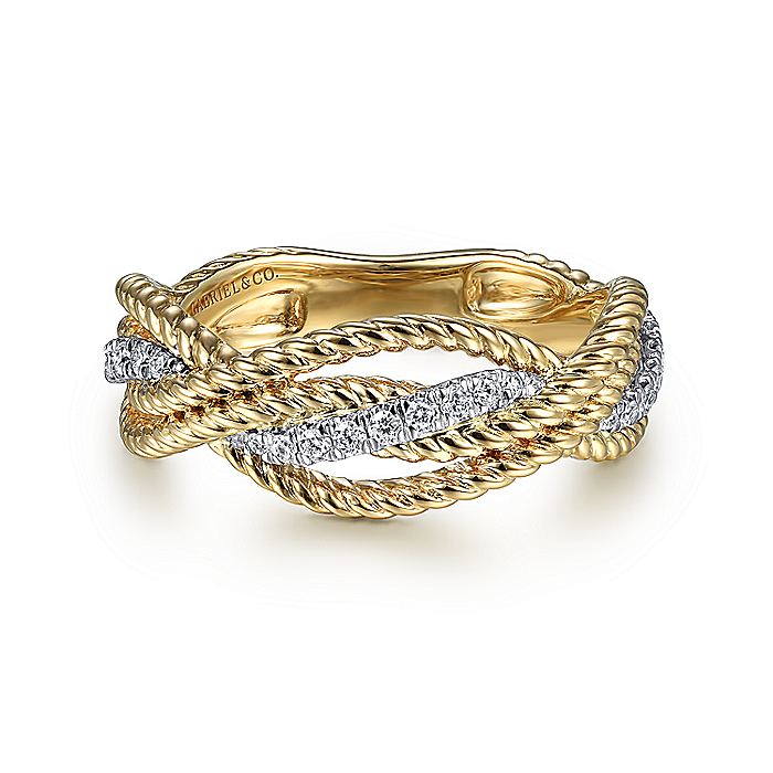 HOME / Gabriel & Co. LR51732M45JJ 14K White-Yellow Gold Twisted Rope and Diamond Intersecting Ring