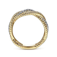 Gabriel & Co. LR51732M45JJ 14K White-Yellow Gold Twisted Rope and Diamond Intersecting Ring