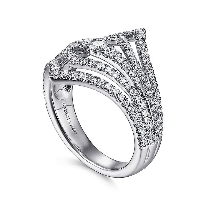 Gabriel & Co. LR51736W45JJ 14K White Gold Multi Row Diamond Chevron Ring