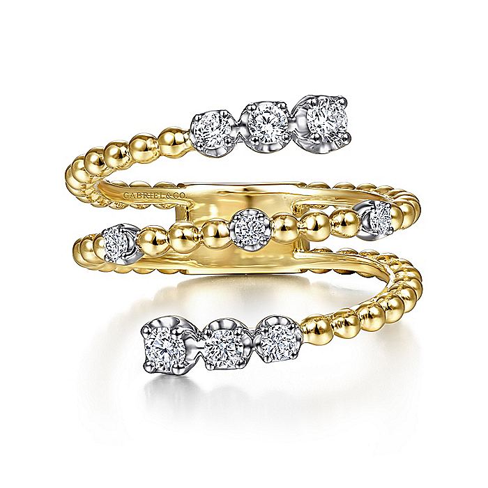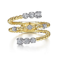 HOME / Gabriel & Co. LR51746M45JJ 14K White-Yellow Gold Bujukan Ball and Diamond Open Bypass Wrap Ring with Butter Cup Setting in size 14.9mm width