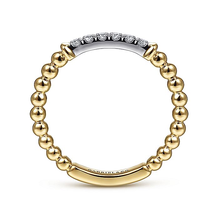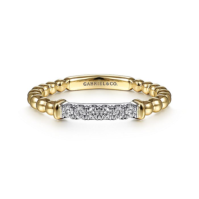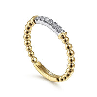 Gabriel & Co. LR51786M45JJ 14K White-Yellow Gold Bujukan Beaded Band with Diamond Pavé Center Bar