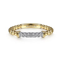 HOME / Gabriel & Co. LR51786M45JJ 14K White-Yellow Gold Bujukan Beaded Band with Diamond Pavé Center Bar