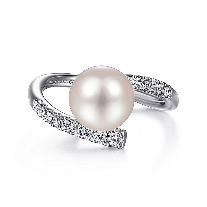 HOME / Gabriel & Co. LR51812W45PL 14K White Gold Bypass Pearl and Diamond Ring