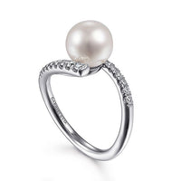 Gabriel & Co. LR51812W45PL 14K White Gold Bypass Pearl and Diamond Ring
