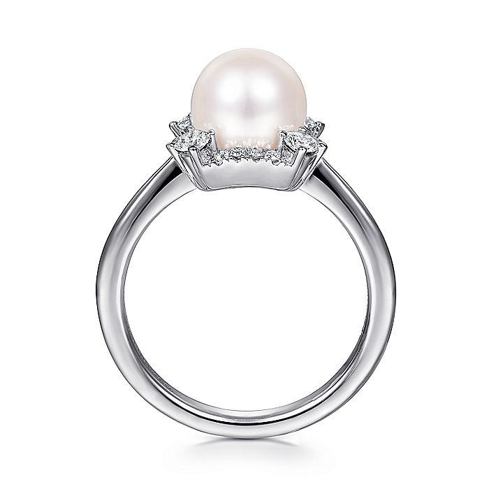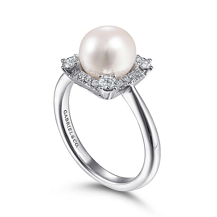 HOME / Gabriel & Co. LR51814W45PL 14K White Gold Pearl Ring with Diamond Halo