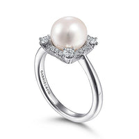 Gabriel & Co. LR51814W45PL 14K White Gold Pearl Ring with Diamond Halo