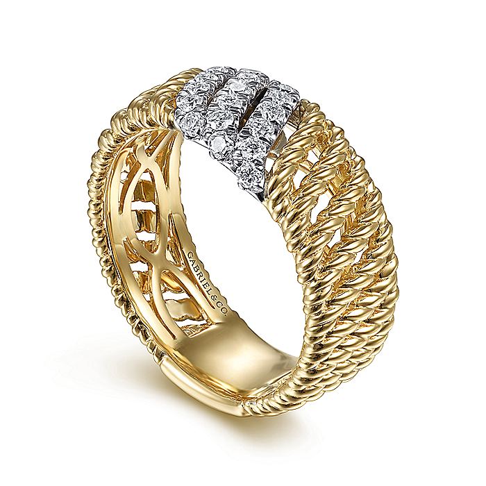 Gabriel & Co. LR51819M45JJ 14K White-Yellow Gold Multi Twisted Rope and Diamond Ring