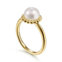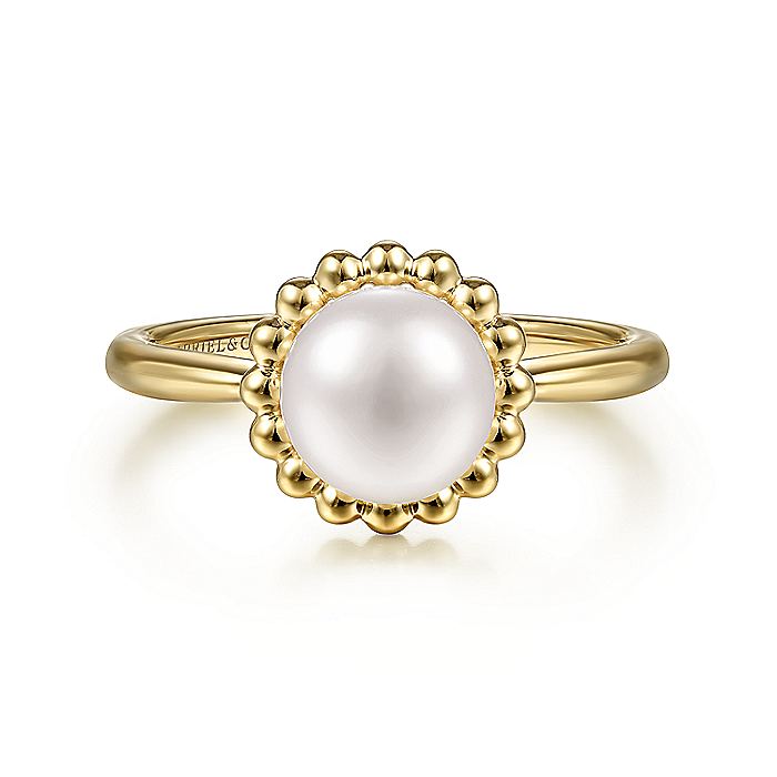 HOME / Gabriel & Co. LR51835Y4JPL 14K Yellow Gold Pearl Ring with Bujukan Beaded Halo