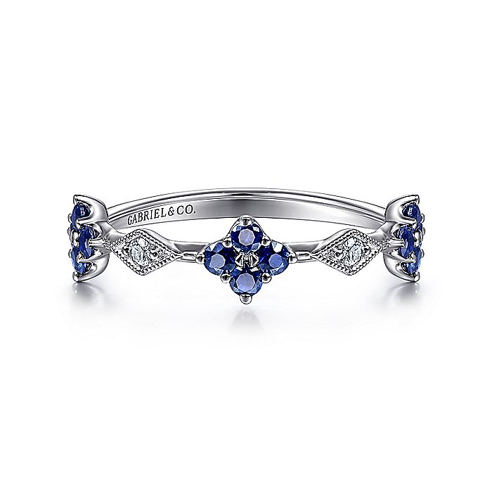 HOME / Gabriel & Co. LR51931W45SA 14K White Gold Alternating Sapphire and Diamond Station Ring