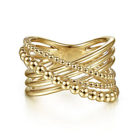 Gabriel & Co. LR51967Y4JJJ 14K Yellow Gold High Polished Bujukan Bead Criss Cross Ring