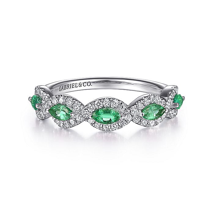 Gabriel & Co. LR52021W45EA 14K White Gold Diamond and Emerald Twisted Ring