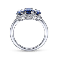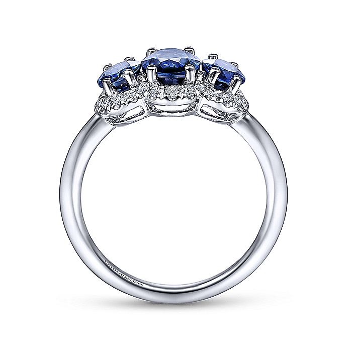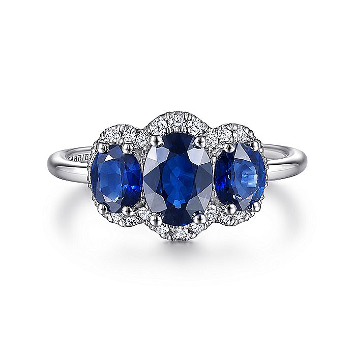 HOME / Gabriel & Co. LR52023W45SA 14K White Gold Diamond and Sapphire Oval Halo Three Stone Ring