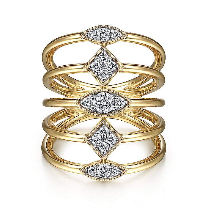 HOME / Gabriel & Co. LR52029Y45JJ 14K Yellow Gold Geometric Station Diamond Pavé Statement Ring