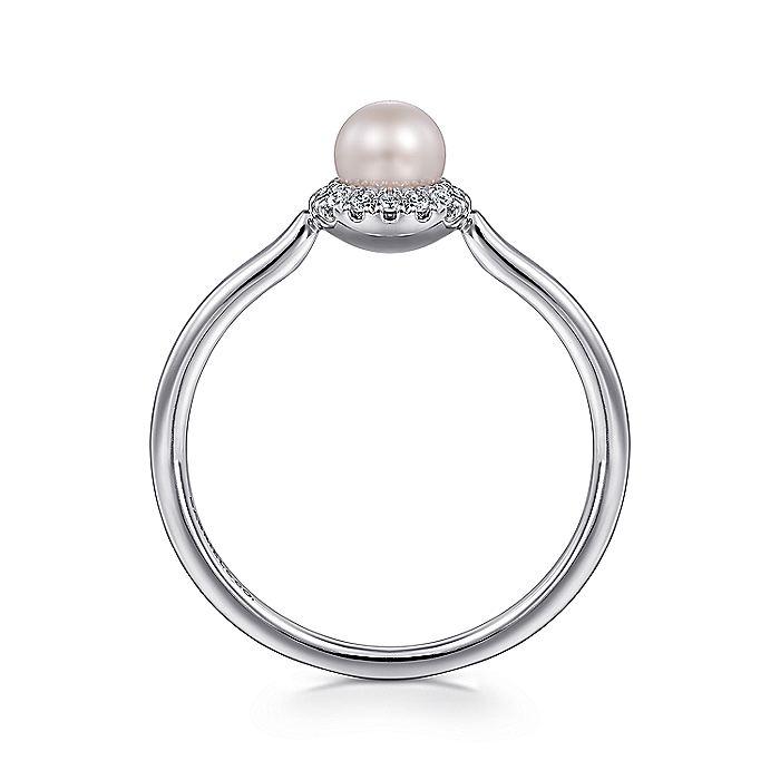HOME / Gabriel & Co. LR52419W45PL 14K White Gold Pearl Ring with Diamond Halo