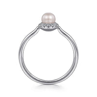 Gabriel & Co. LR52419W45PL 14K White Gold Pearl Ring with Diamond Halo