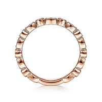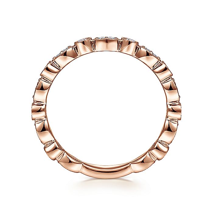Featuring diamonds throughout the band and charming miligrain edging, this 0.23ct stackable ring is a versatile must-have accessory. The 14K rose gold band features a scalloped silhouette of alternating round and marquise shapes.