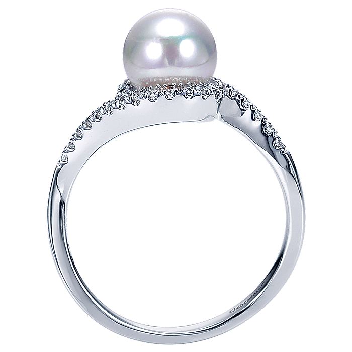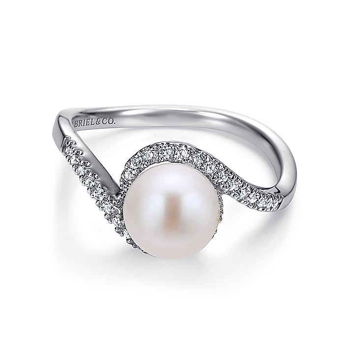 Gabriel & Co. LR6082W45PL 14k White Gold Cultured Pearl Diamond Bypass Ring
