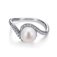 HOME / Gabriel & Co. LR6082W45PL 14k White Gold Cultured Pearl Diamond Bypass Ring