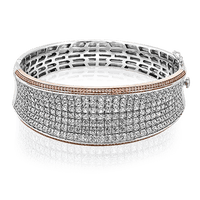 Offering a distinctive contemporary style, this bangle bracelet is white and rose gold is accented by an astounding 18.85 ctw princess cut white diamonds and .79 round pink diamonds.