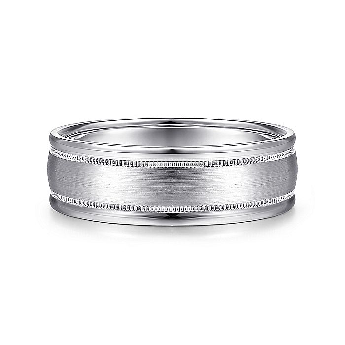 HOME / Gabriel & Co. MBH0133-70W4JJJ 14K White Gold 7mm - Satin Milgrain Channel Polished Edge Men's Wedding Band