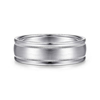 Gabriel & Co. MBH0133-70W4JJJ 14K White Gold 7mm - Satin Milgrain Channel Polished Edge Men's Wedding Band