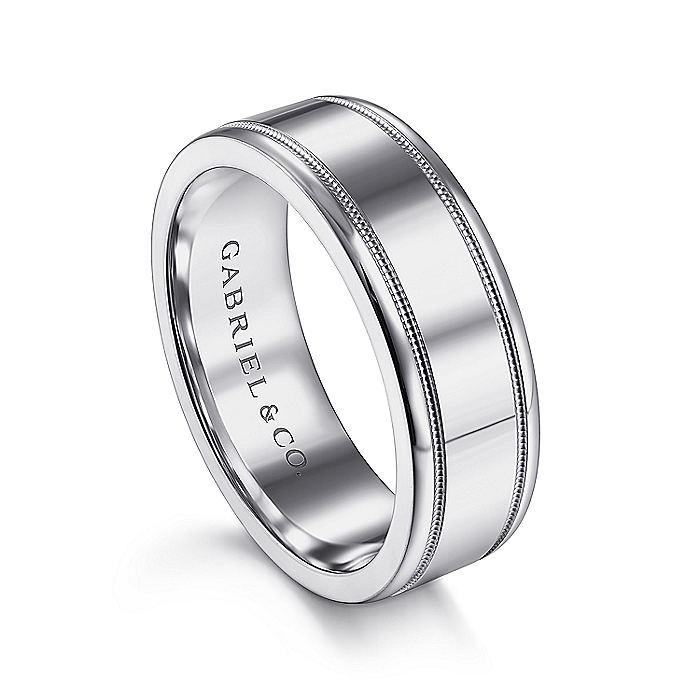 Gabriel & Co. MBH0140-70W4JJJ 14K White Gold 7mm - High Polished Men's Wedding Band with Millgrain