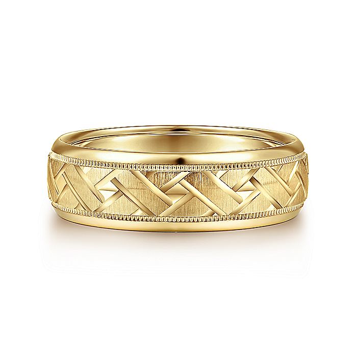 Gabriel & Co. MBH0166-70Y4JJJ 14K Yellow Gold 7mm - Engraved Woven Men's Wedding Band