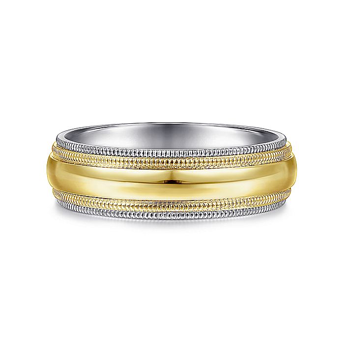 HOME / Gabriel & Co. MBH0173-60M4JJJ 14K White-Yellow Gold 6mm - Polished Center and Milgrain Edge Men's Wedding Band