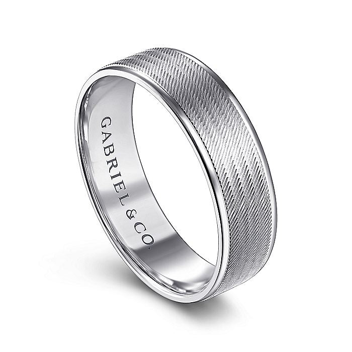 HOME / Gabriel & Co. MBL0102-60W4JJJ 14K White Gold 6mm - Brushed Finish and Polished Edge Men's Wedding Band