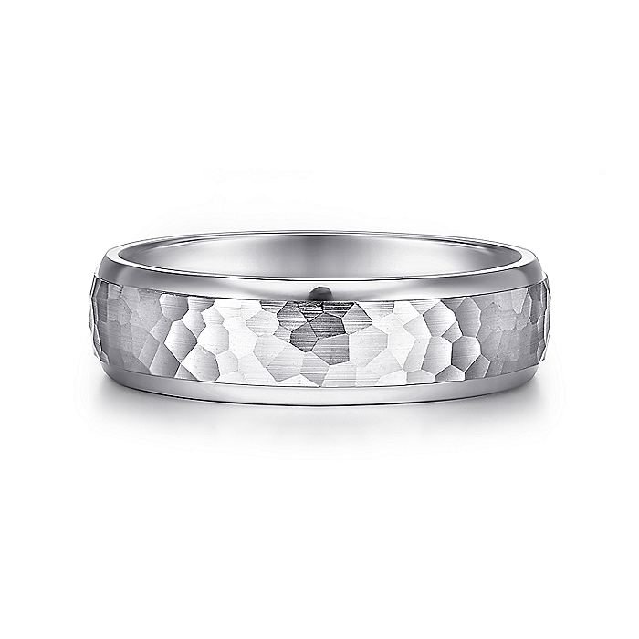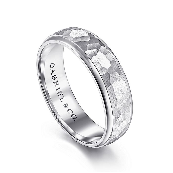 Gabriel & Co. MBM0112-60W4JJJ 14K White Gold 6mm - Hammered Center and Polished Edge Men's Wedding Band