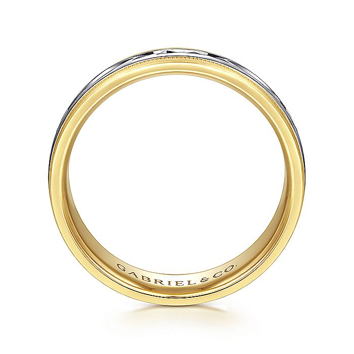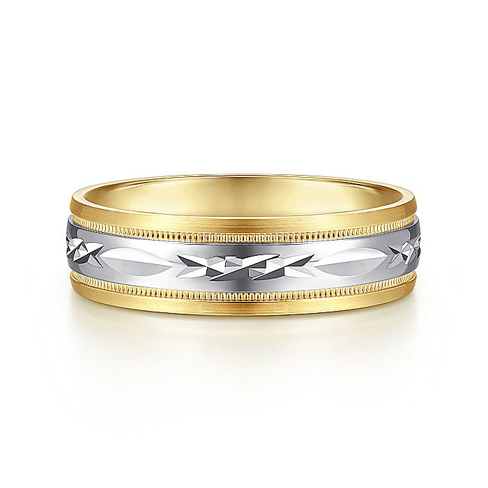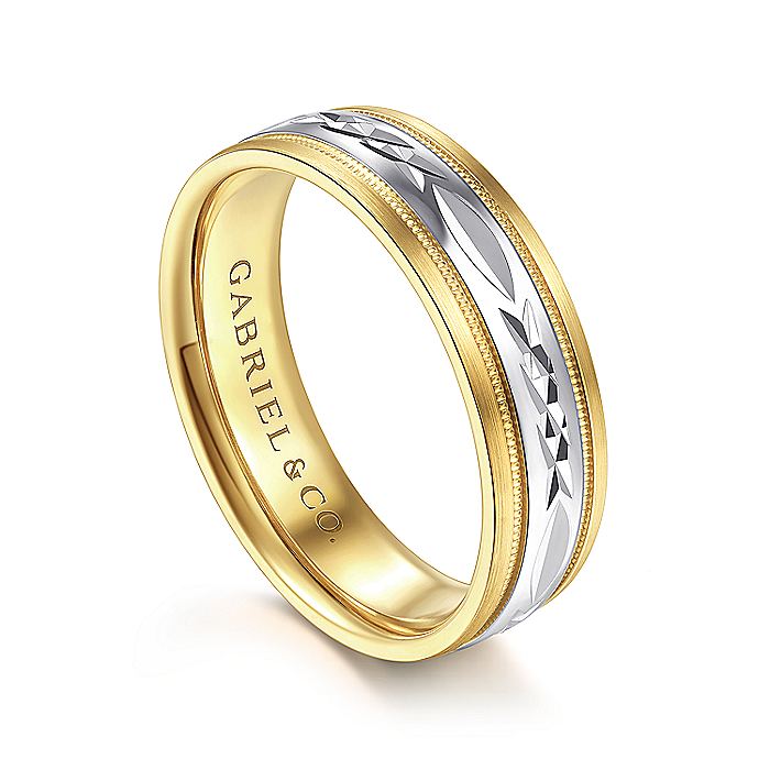 Gabriel & Co. MBM0119-60M4JJJ 14K White-Yellow 6mm - Engraved Center and Millgrain Channel Men's Wedding Band