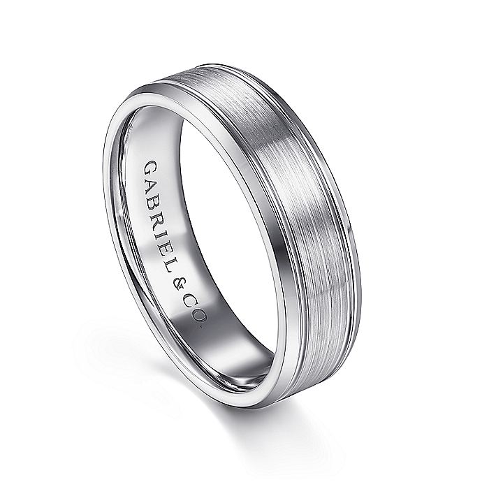Gabriel & Co. MBM0127-60W4JJJ 14K White Gold 6mm - Satin Channel Polished Edge Men's Wedding Band