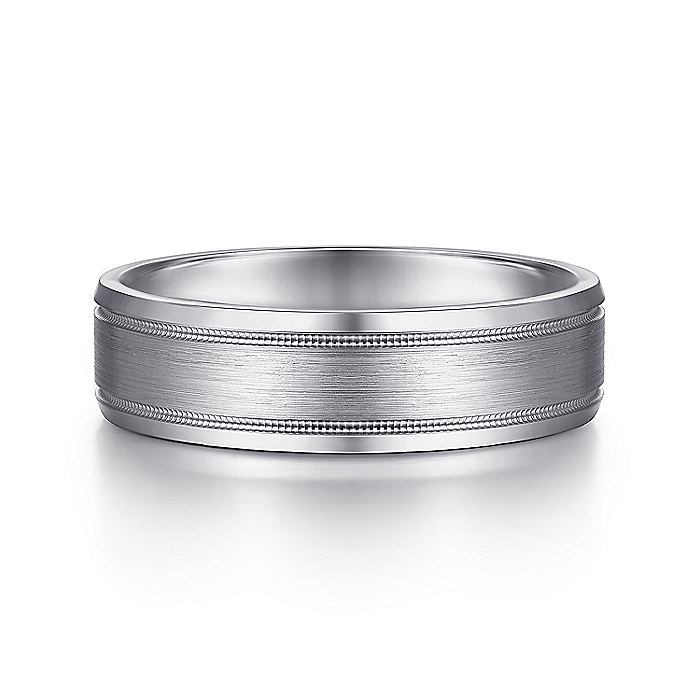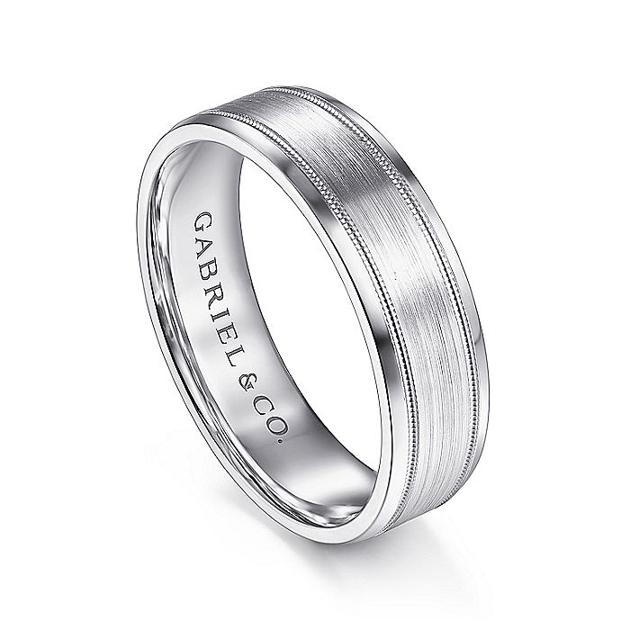 Gabriel & Co. MBM0128-60W4JJJ 14K White Gold 6mm - Satin Polish Center and Milgrain Edge Men's Wedding Band