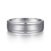 HOME / Gabriel & Co. MBM0128-60W4JJJ 14K White Gold 6mm - Satin Polish Center and Milgrain Edge Men's Wedding Band