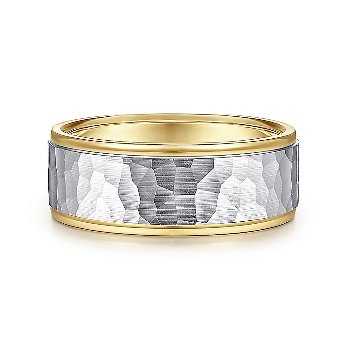 HOME / Gabriel & Co. MBM0129-80M4JJJ 14K White-Yellow Gold 8mm - Hammered Center and Polished Edge Men's Wedding Band