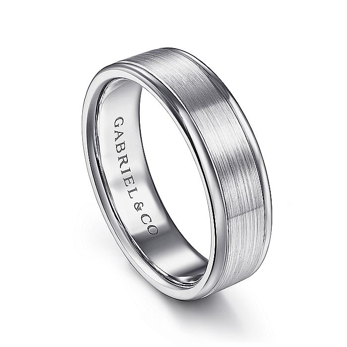 Gabriel & Co. MBM0132-60W4JJJ 14K White Gold 6mm - Satin Center and Polished Edge Men's Wedding Band