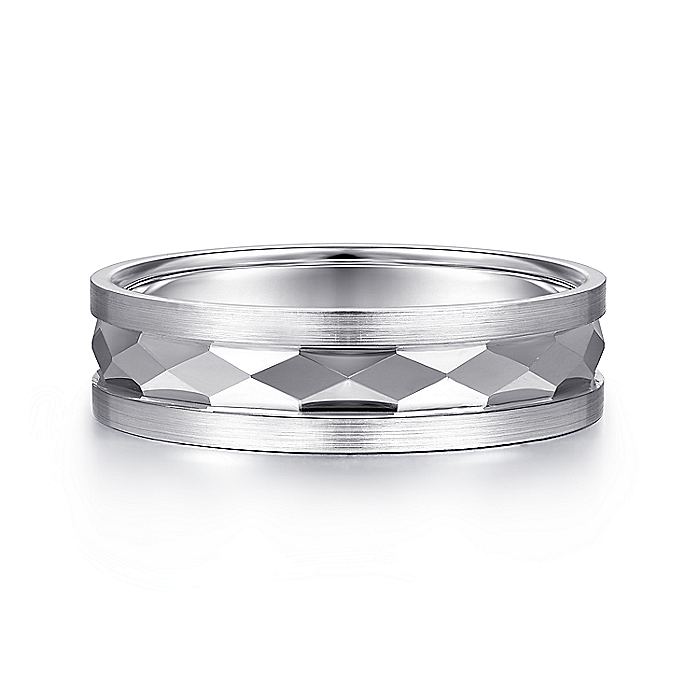 HOME / Gabriel & Co. MBM0158-60W4JJJ 14K White Gold 6mm - Center Diamond Cut Men's Wedding Band
