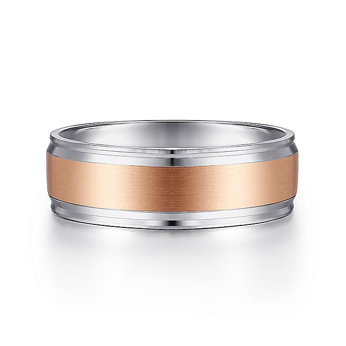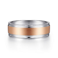 Gabriel & Co. MBM0172-70T4JJJ 14K White-Rose Gold 7mm - Satin Center Men's Wedding Band