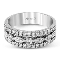 This detailed, lovely band contains .46 total carat weight of shining white diamonds in a vintage-inspired design.