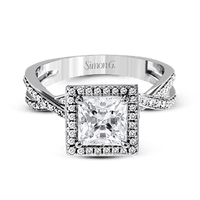 HOME / Princess-Cut Halo Criss-Cross Engagement Ring In 18k With Diamonds